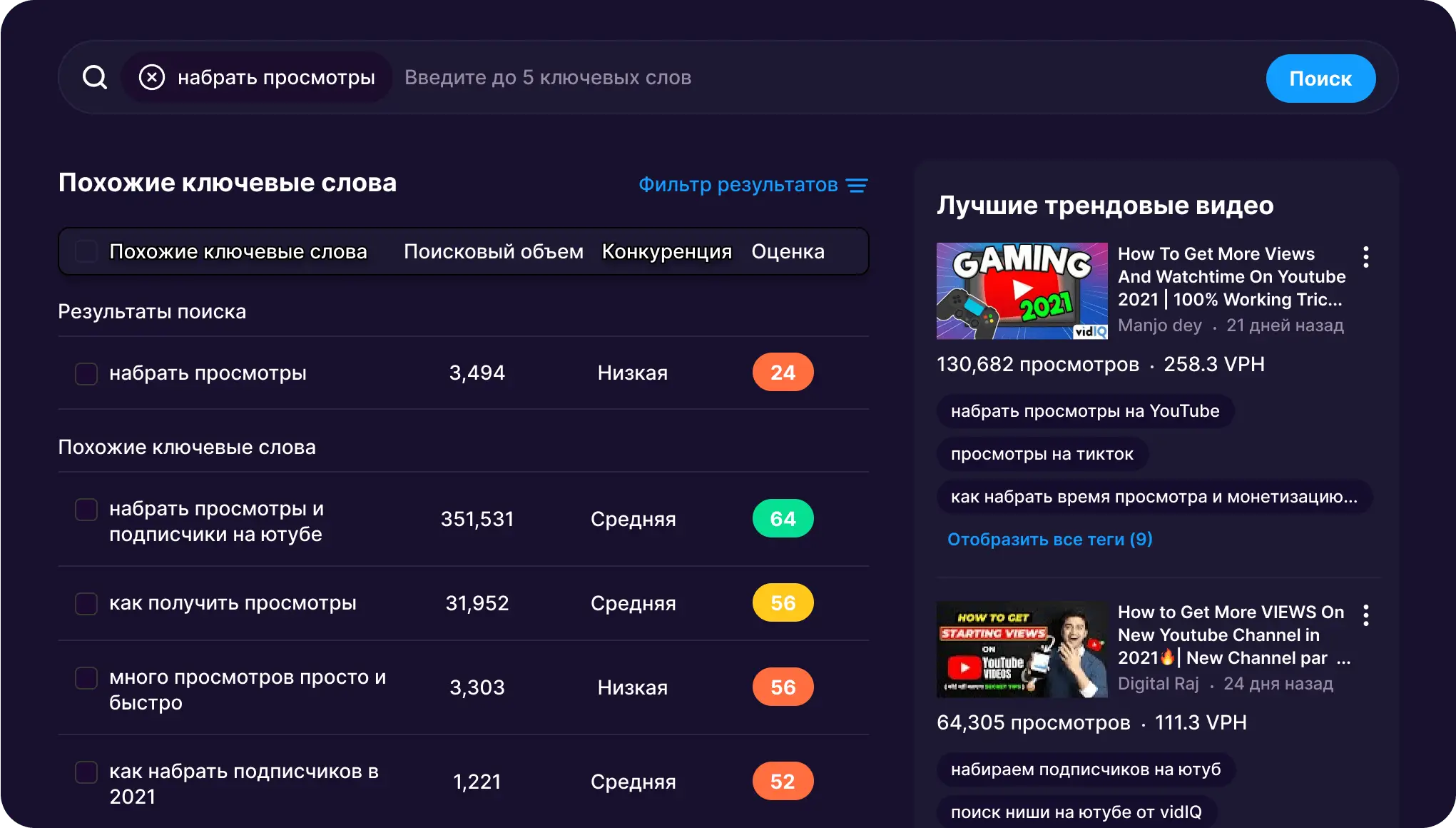 С помощью VidIQ вы сможете увеличить видимость своих видео, оптимизировать теги, анализировать конкурентов и многое другое. Наш инструмент позволит вам увеличить свою аудиторию и получить больше дохода от вашего канала.